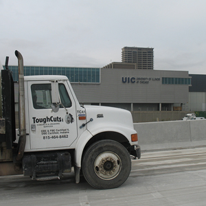 Our bridge grooving machines are equipped with diamond saw blades and efficient vacuums. The blades are mounted on a horizontal shaft, in one or two patterns, one being an even 3/4" spacing between blades or most commonly used IDOT specs referred to as random spacing. Grooving is preferred rather than tinning newly constructed or rebuilt bridge decks, as specified by many states because of a more effective process.